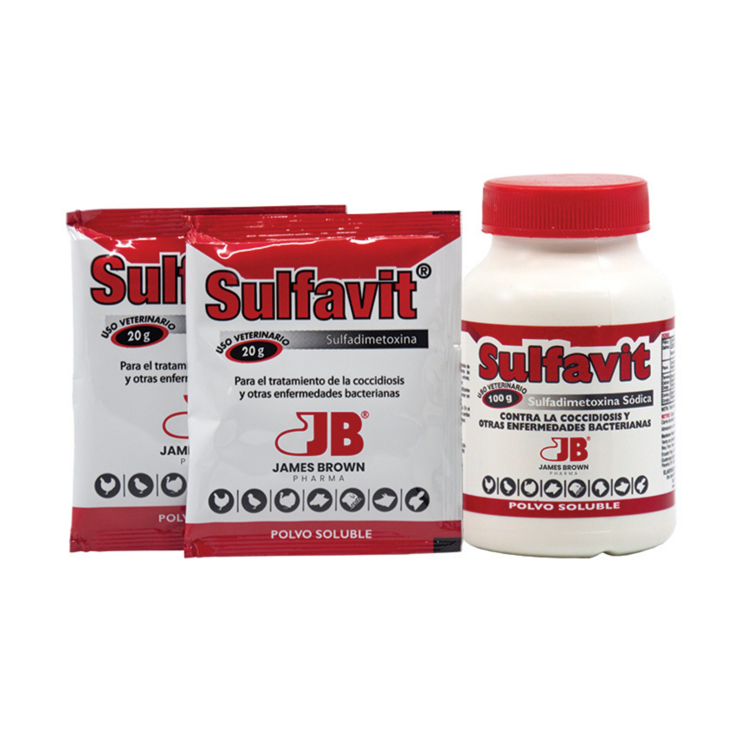 La sulfadimetoxina es una potente sulfamida de acción prolongada, altamente efectiva en el control y tratamiento de coccidiosis e infecciones bacterianas en terneros, cerdos, ovejas, aves y conejos. También efectivo para salmonelosis y cólera aviar. En los niveles recomendados SULFAVIT se disuelve rápidamente en el agua, es un producto palatable y tiene bajo índice de toxicidad. SULFAVIT no incide en el desarrollo y postura de las aves como las sulfas tradicionales.
