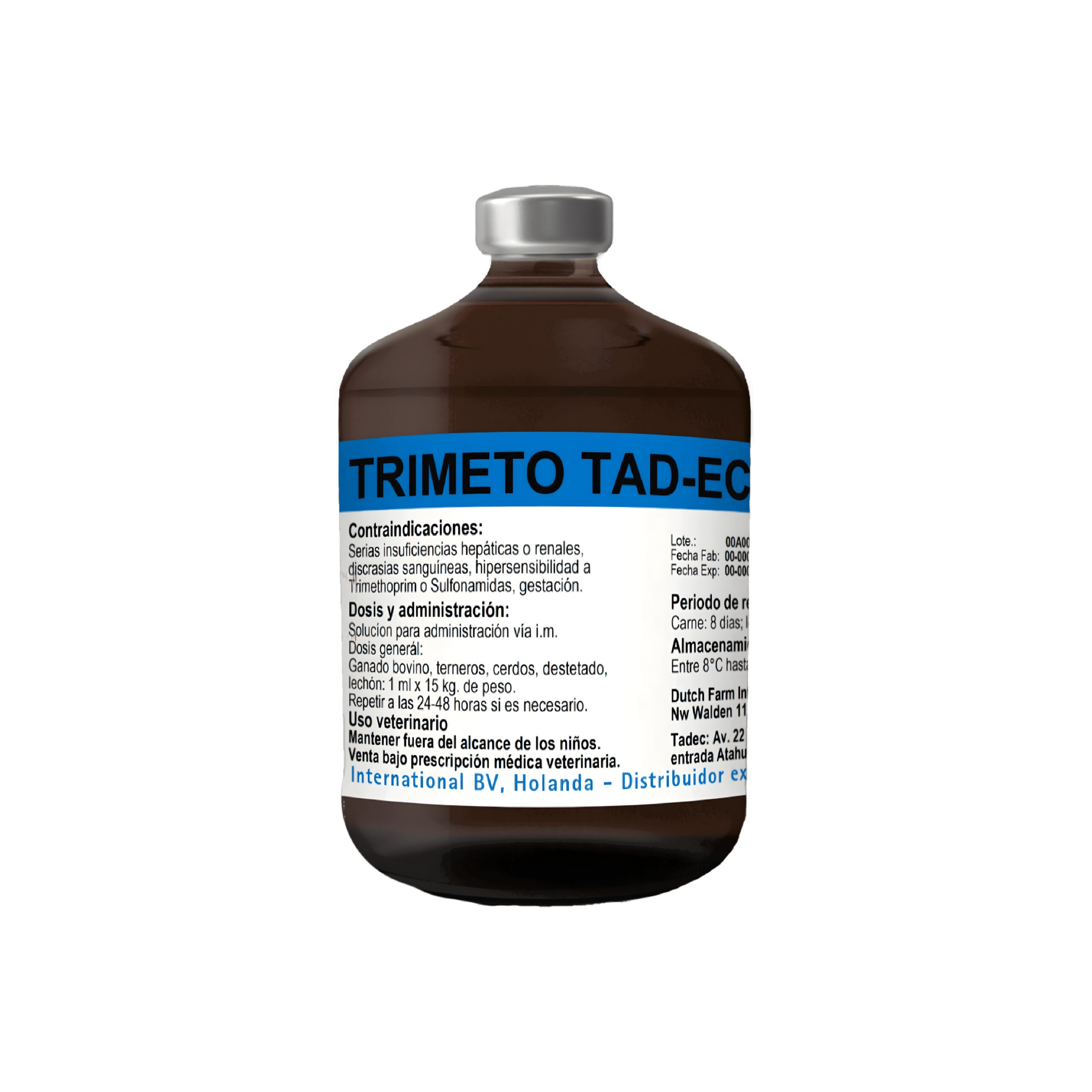 Mientras que las sulfonamidas inhiben la síntesis del ácido fólico de las bacterias en competencia de sustrato con el ácido p-amino benzoico, el trimetoprim suprime la síntesis bacteriana del ácido folínico. Este bloqueo doble impide por completo la proliferación bacteriana (Gram-positivas y Gram-negativas). Además, se obtiene un efecto bactericida por la acción sinérgica de la combinación. Ganado bovino y terneros: En caso de bronquitis, neumonía, enteritis, nefritis, metritis,inflamación umbilical, septicemia por coli. Cerdos, destetes y lechones: En caso de bronquitis, neumonía, enteritis, nefritis, metritis, complejo MMA (mastitis-metritis-agalactia) inflamación umbilical, neumonía enzoótica, complejo griposo, y enfermedad de los edemas, septicemia por E coli.